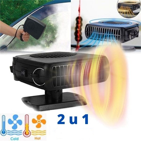 Prijenosni auto grijač veličine 2u1 grije vas zimi i pomaže u rješavanju problema magle i mraza na vjetrobranskom staklu vašeg automobila koji vam blokiraju pogled.