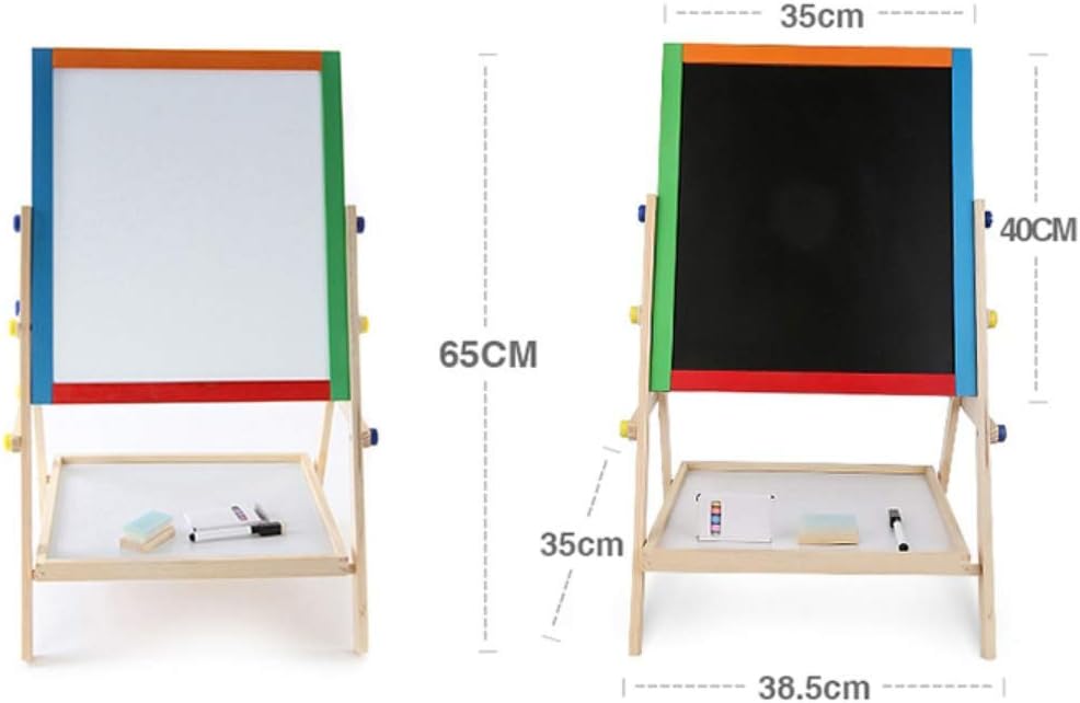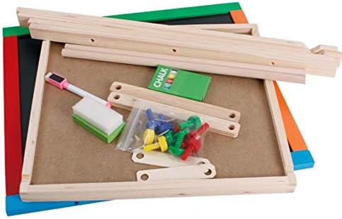 Bela strana table se koristi za pisanje markerom i postavljanje magneta. Crna strana table je savršena za pisanje kredom. Opremljena praktičnom drvenom policom na kojoj se može odložiti kreda, marker ili sunđer za brisanje. Ako se vaše dete zasiti crtanja kredom, jednostavno odvrnite dva šrafa, okrenite tablu i ponovo pričvrstite šrafove, pa će vaše dete moći da crta markerom. Tabla je montirana na drveni ram.