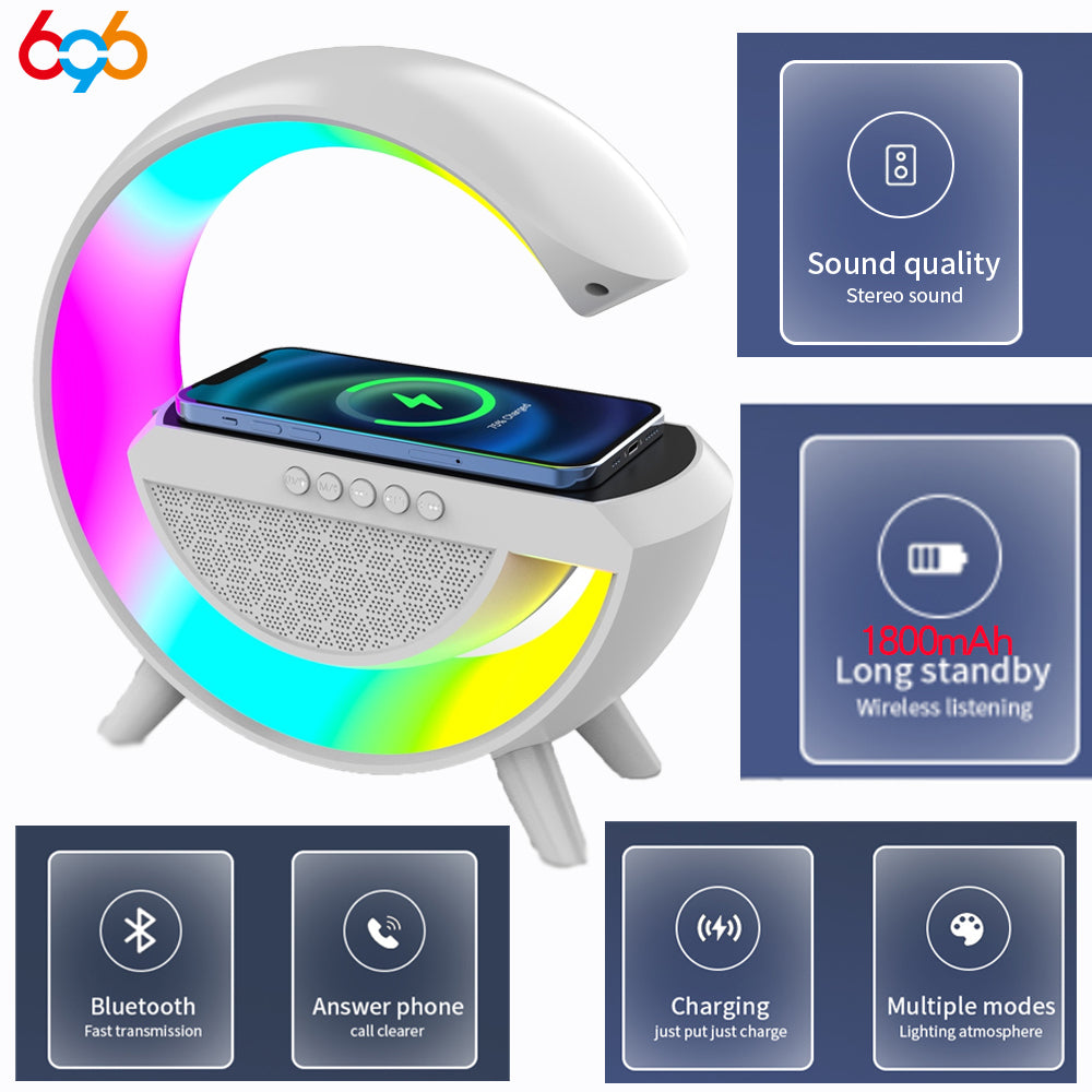 Ova moderna multifunkcionalna lampa je opremljena bluetooth zvučnikom, brzim bežičnim punjačem i spektakularnim RGB svetlom za sinhronizaciju muzike stvarajući jedinstveno audiovizuelno iskustvo.