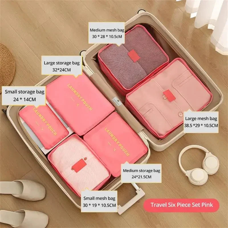 Set organizatora uključuje 6 vrećica izrađenih od vodootpornog najlonskog materijala.