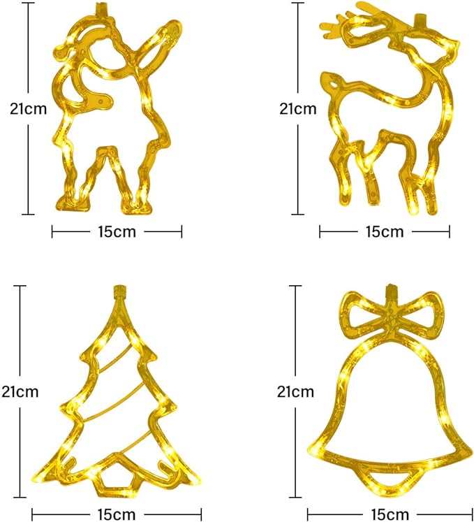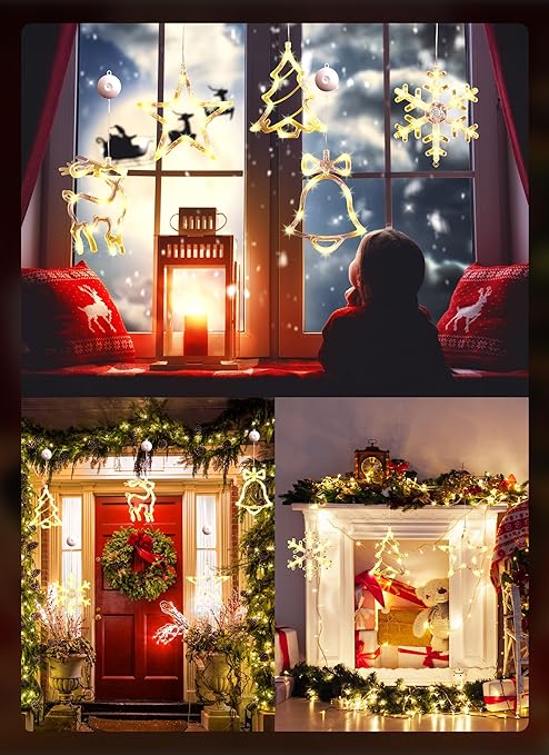 Ikonični ukrasi na novogodišnju temu, klasična zvona-božićna jelka-snježne pahulje, ove višekratne božićne lampice za dekoraciju prozora će ukrasiti Vas dom i učiniti da se osećate lepše tokom prazničnih dana.