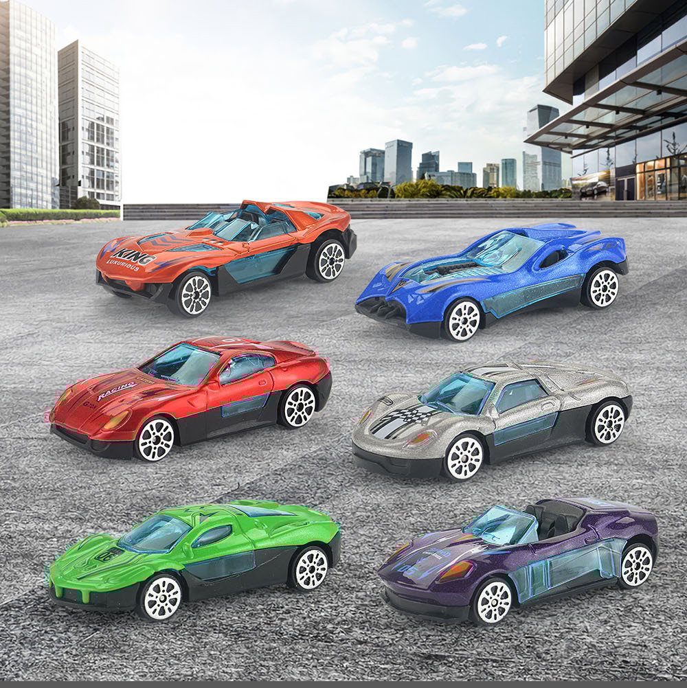 6 Mini automobila u više boja od legure u jednom velikom ekološkom plastičnom kamionu koji djeca mogu lako nositi s automobilima unutra.