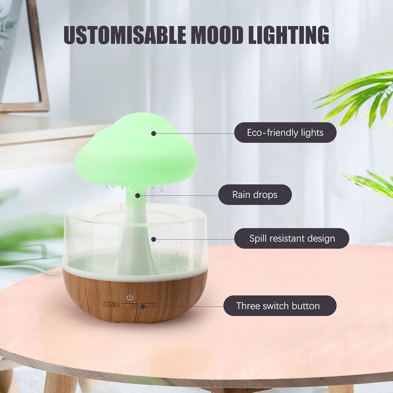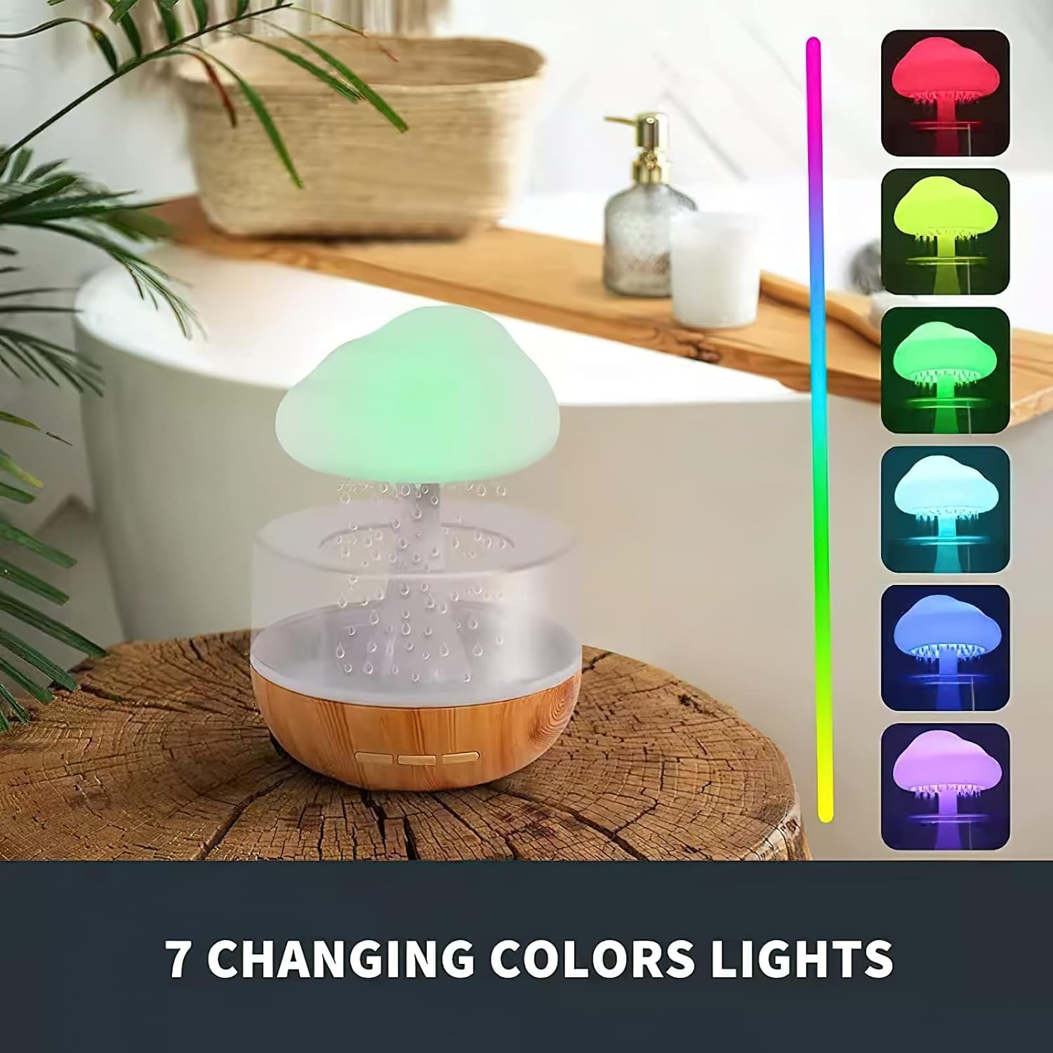 Ovlaživač sa mekanim noćnim svetlom koje menja 7 boja. Dizajn noćnog svetla omogućava jasno viđenje kapaciteta nivoa vode u ovlaživaču noću, čime se izbegava nedostatak vode i prestanak rada.