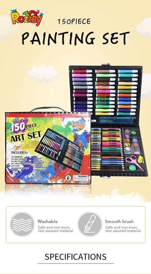 Svi materijali u ovom umetničkom setu su netoksični, što roditeljima pruža mir znajući da njihova deca koriste bezbedne umetničke potrepštine.