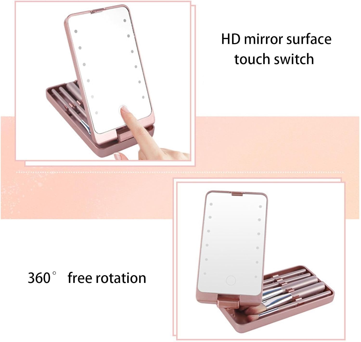 Lako prilagodite ugao za optimalno osvetljenje; rotira se za 360 stepeni i sklapa radi lakšeg odlaganja u rančeve ili prtljag; osvetljeno ogledalo za šminkanje koje je zgodno za upotrebu.