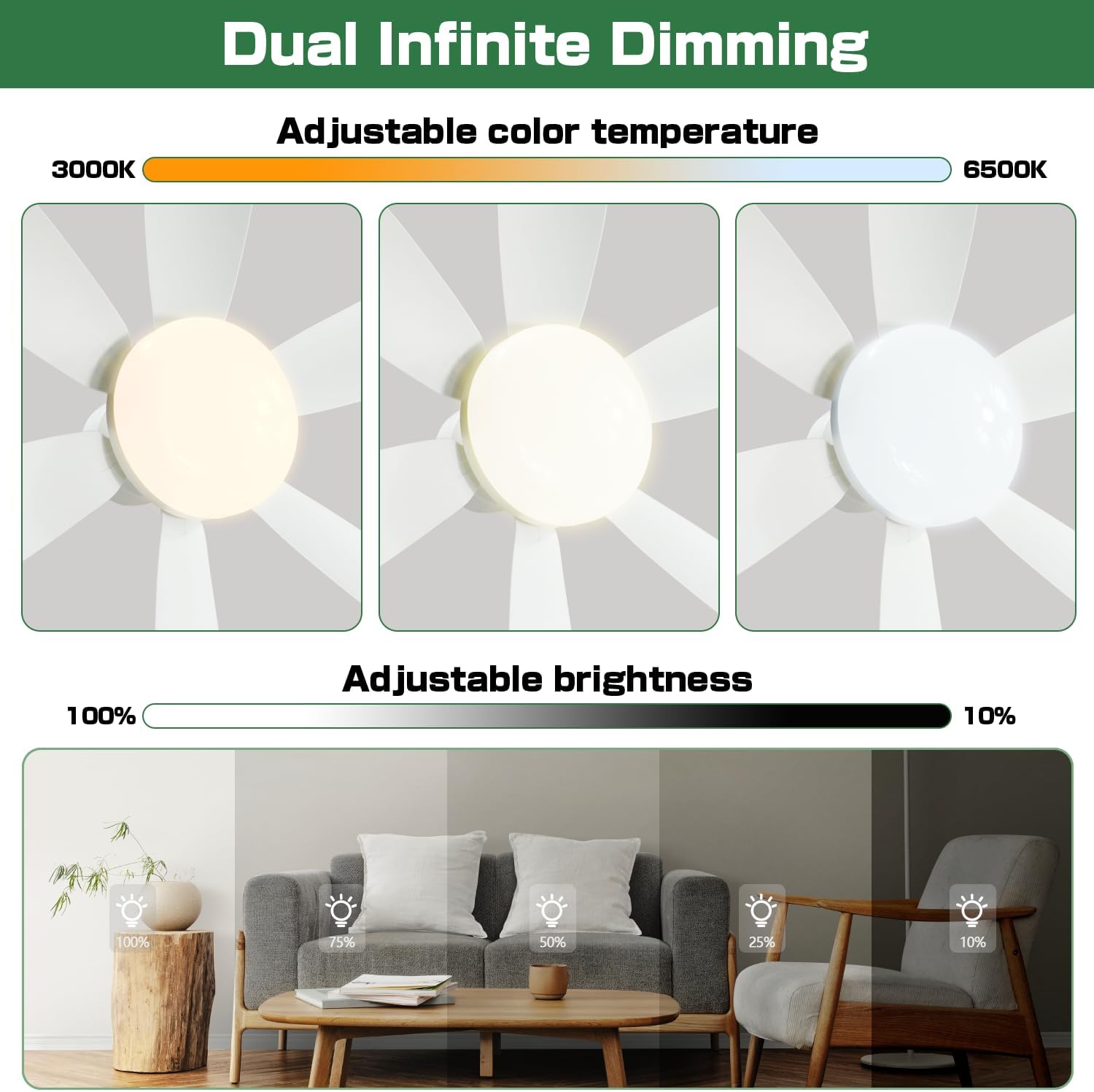 Naš ventilator poseduje ugrađeni LED izvor svetlosti koji pruža svetlo i energetski efikasno osvetljenje. Sa dve mogućnosti prigušivanja, lako možete podesiti temperaturu boje i svetlinu kako biste stvorili prilagođenu i udobnu atmosferu osvetljenja. Otkrivajte praktičnost i efikasnost naše LED lampe za ventilator.