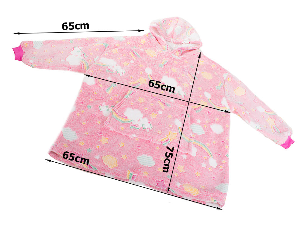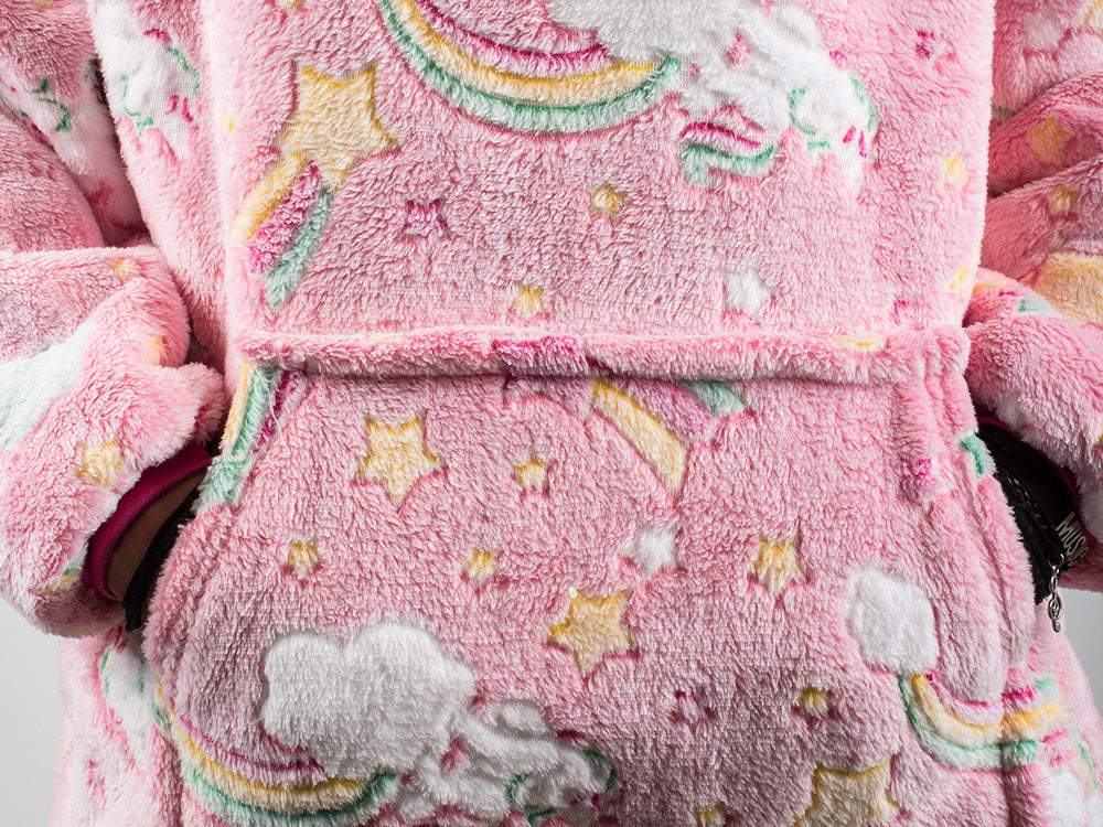 Pruža toplinu tokom večeri uz film, pored vatre ili na terasi. Ima veliku praktičnu džepu u kojoj deca mogu čuvati sitnice ili grejati ruke.