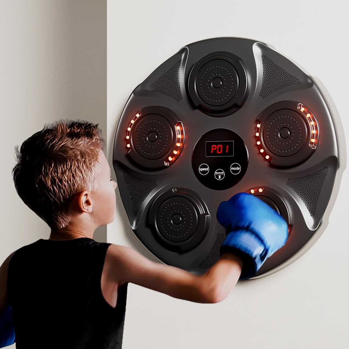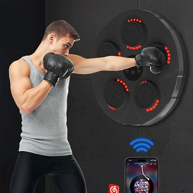 Sa ovom zidnom mašinom za boks sa ugrađenim zvučnikom i svjetlosnim senzorom, možete vježbati udarce u ritmu muzike ili se nasumično kretati od centra mašine za boks do prostora mašine za boks ispod svetla.