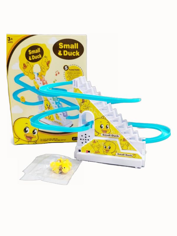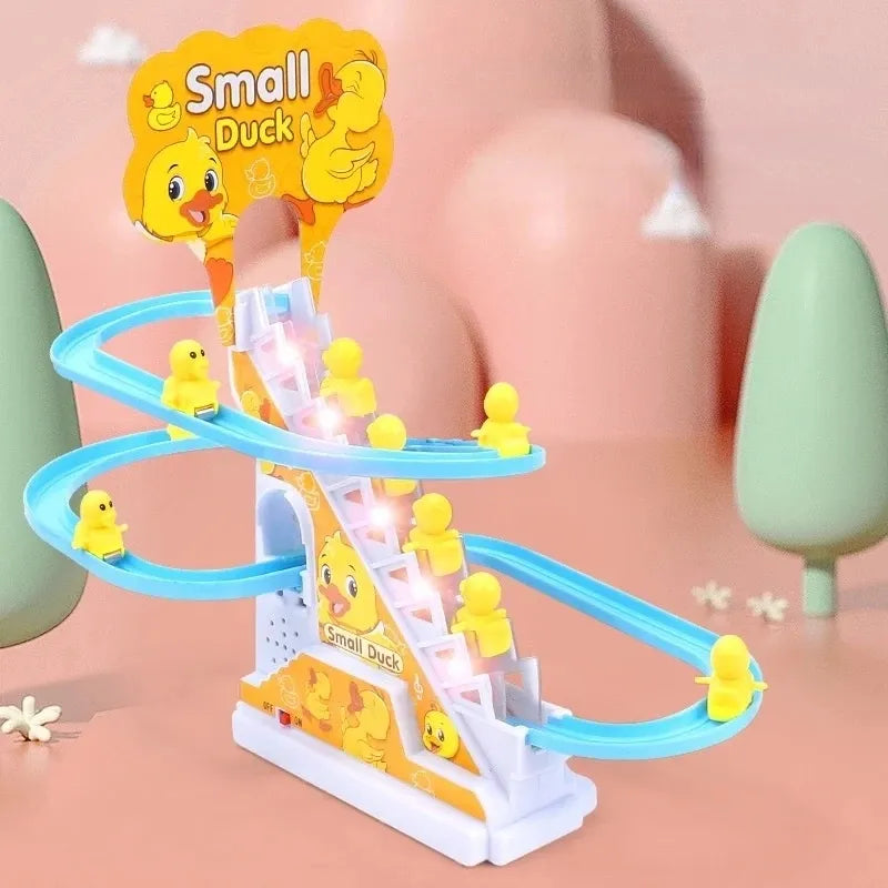 Nakon što se popnu uz stepenice, pačići se spuštaju niz uzbudljiv tobogan.