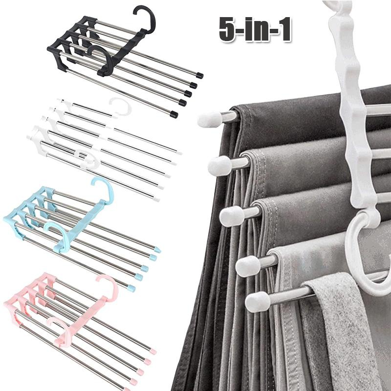 Podesivi stalak za odlaganje može se stajati zakačen s dve kuke ili se može obesiti okomito(vertikalno), može držati do 5 pari pantalona odjednom i učiniće vaš ormar urednijim.