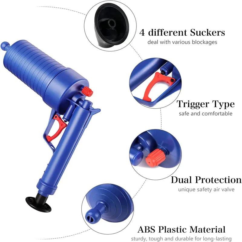Ovaj pištolj za otčepljivanje cijevi vam pruža brz i efikasan način da odčepite toalete, lavaboe, tuševe, kanalizacione vodove i još mnogo toga!
