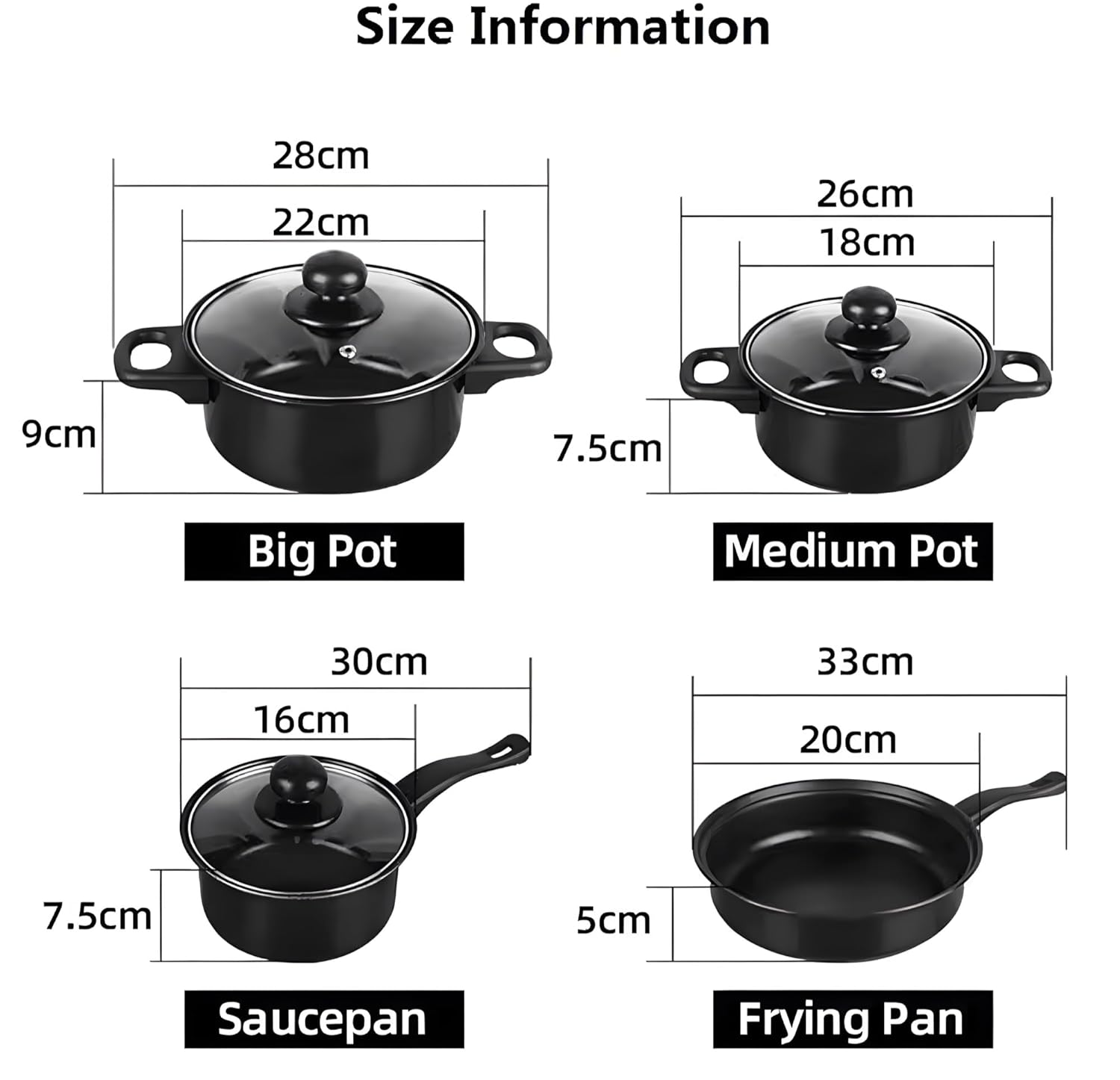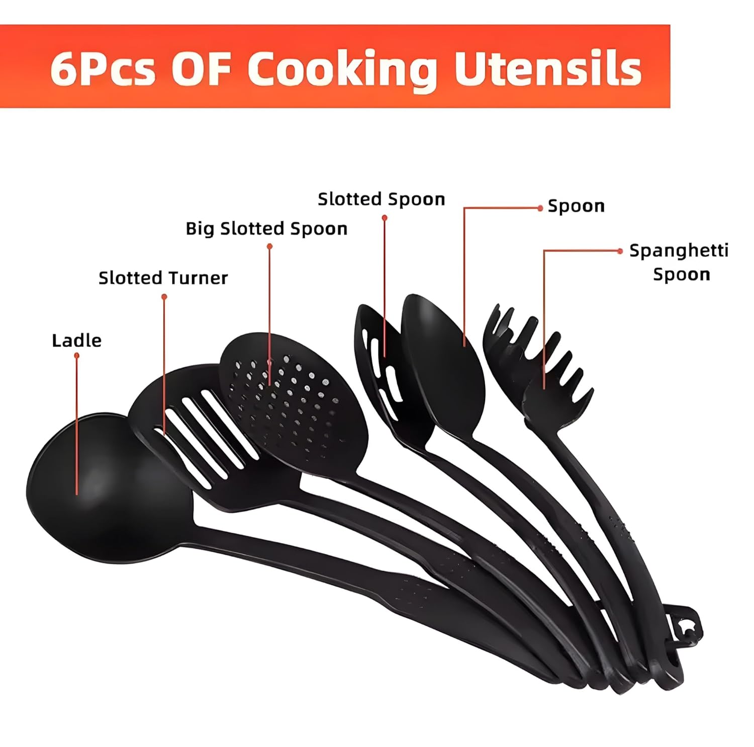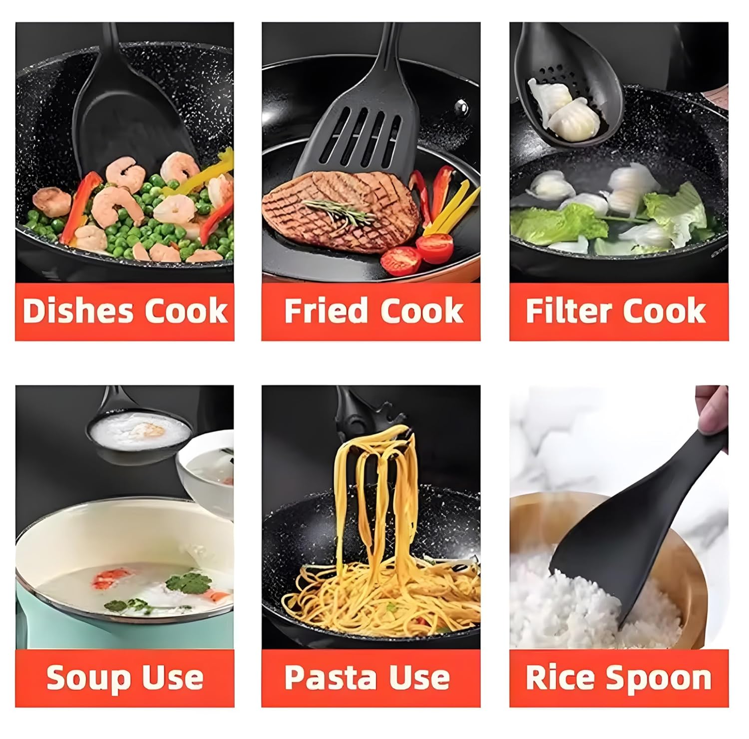Kuhinjski set za kuvanje dolazi sa 1 tiganjem, 2 šerpe, 1 posudom za sos, 3 poklopca i setom od 6 kuhinjskih alatki (kutlača, spatula, lopatica, rešetkasta lopatica, kašika za skidanje pene i server za špagete).
