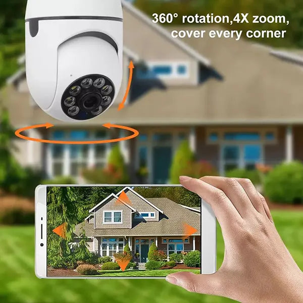 Opremljen sa senzorom GC1054 i objektivom od 3.6 mm sa širokim vidnim uglom od 80°, Sigurnosna WIFI kamera 360° snima kristalno jasne slike i video zapise visoke rezolucije.